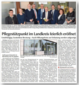 Seit 1.10.2022 gibt es im Landkreis Freising einen Pflegestützpunkt. Träger sind die Kranken- und Pflegekassen, der Bezirk Oberbayern, sowie der Landkreis Freising.